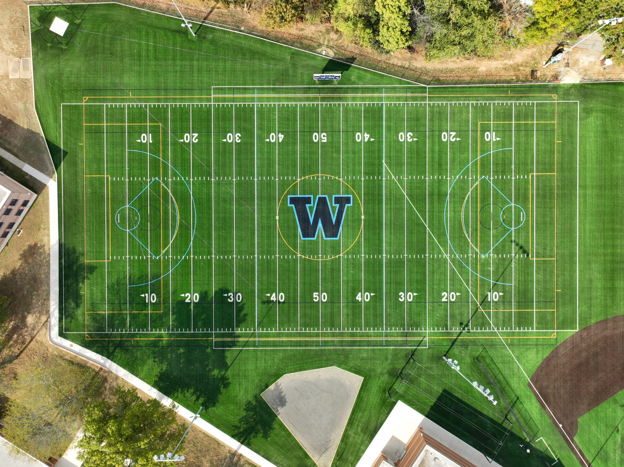The project successfully achieved the district’s goal to expand available playtime by providing a facility that is available for nighttime games and has the increased durability needed to prevent inclement weather from restricting field use. To ensure the field could accommodate various sports activities, the design team avoided any lines in the baseball infield.
