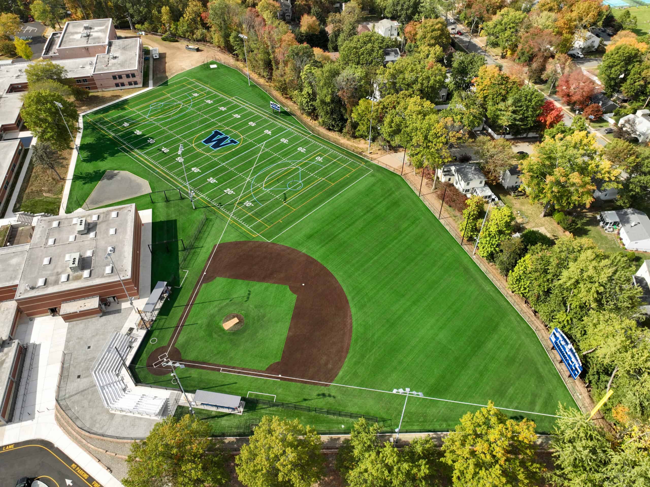 LAN’s civil engineers, land use professionals, land surveyors, and construction administrators designed an artificial turf field that includes a full-sized baseball field, a multi-sport field for soccer, football, lacrosse, and field hockey, and dedicated spaces for field events such as shot put and discus. The fully lit artificial turf field provides greater durability and weather resistance, significantly increasing available playtime and resolving the long-standing issue of the school having to juggle scheduled practices and games.